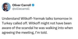 Запланированные в Турции переговоры между Стивом Уиткоффом и Андреем Ермаком отменены на фоне украинского коррупционного скандала