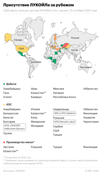 ЛУКОЙЛ решил продать зарубежные активы после введения американских и британских санкций. Как выяснил РБК, компания представлена в 27 иностранных государствах.