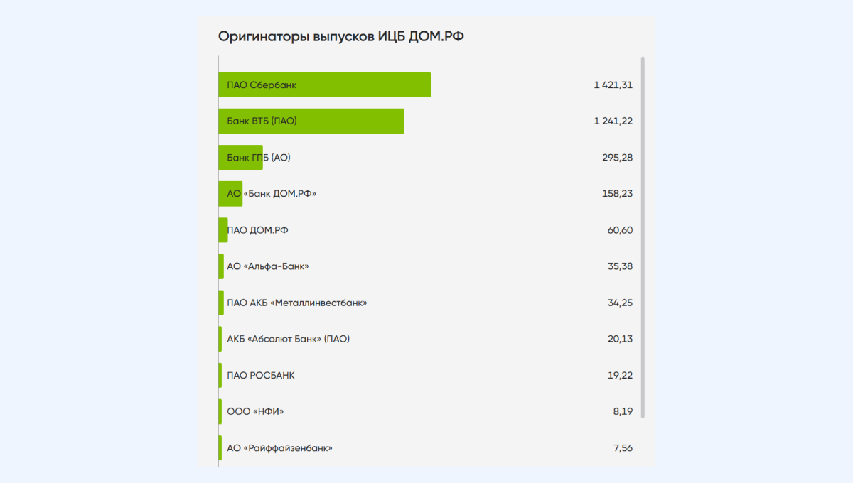 В России ИЦБ выпускаются с 2003 года, а крупнейшим ипотечным агентом является ДОМ.РФ.