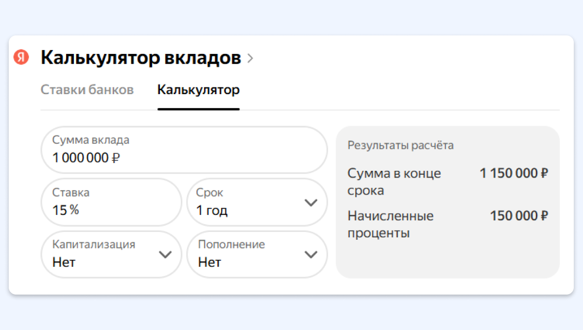 Новый вклад под высокий процент принесёт вам 150 000 рублей за год.