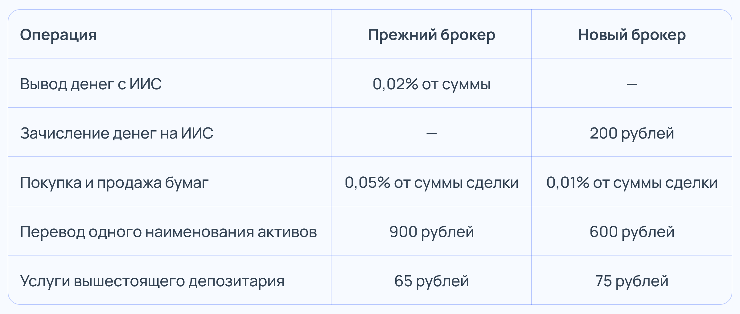 - Комиссия за зачисление денег к новому брокеру (может не быть).