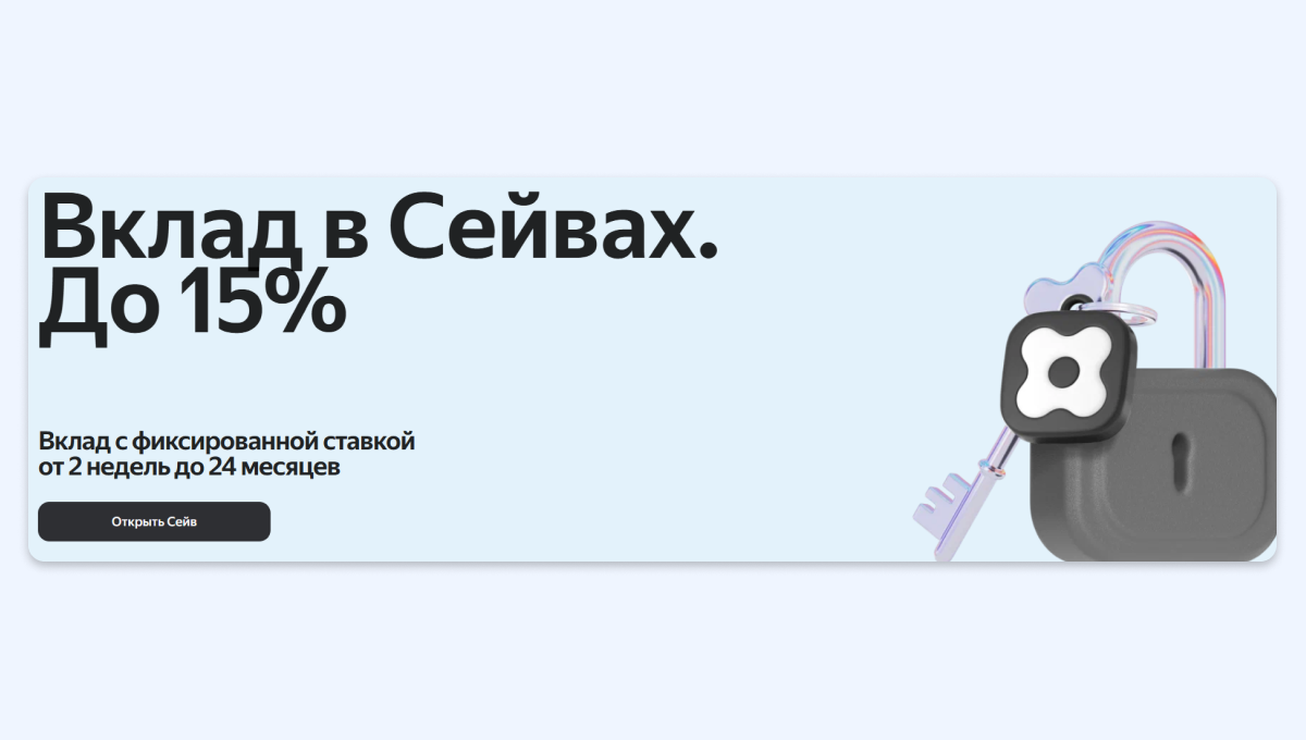 Максимальную ставку (15%) Яндекс Банк предлагает при размещении средств на 3 месяца. У клиентов есть возможность открыть вклад на нестандартный срок — 2 недели под 14,5% годовых. Это придаёт продукту высокую гибкость. Всего клиент может открыть до 10 сейвов (вкладов) на сумму до 10 миллионов рублей каждый.