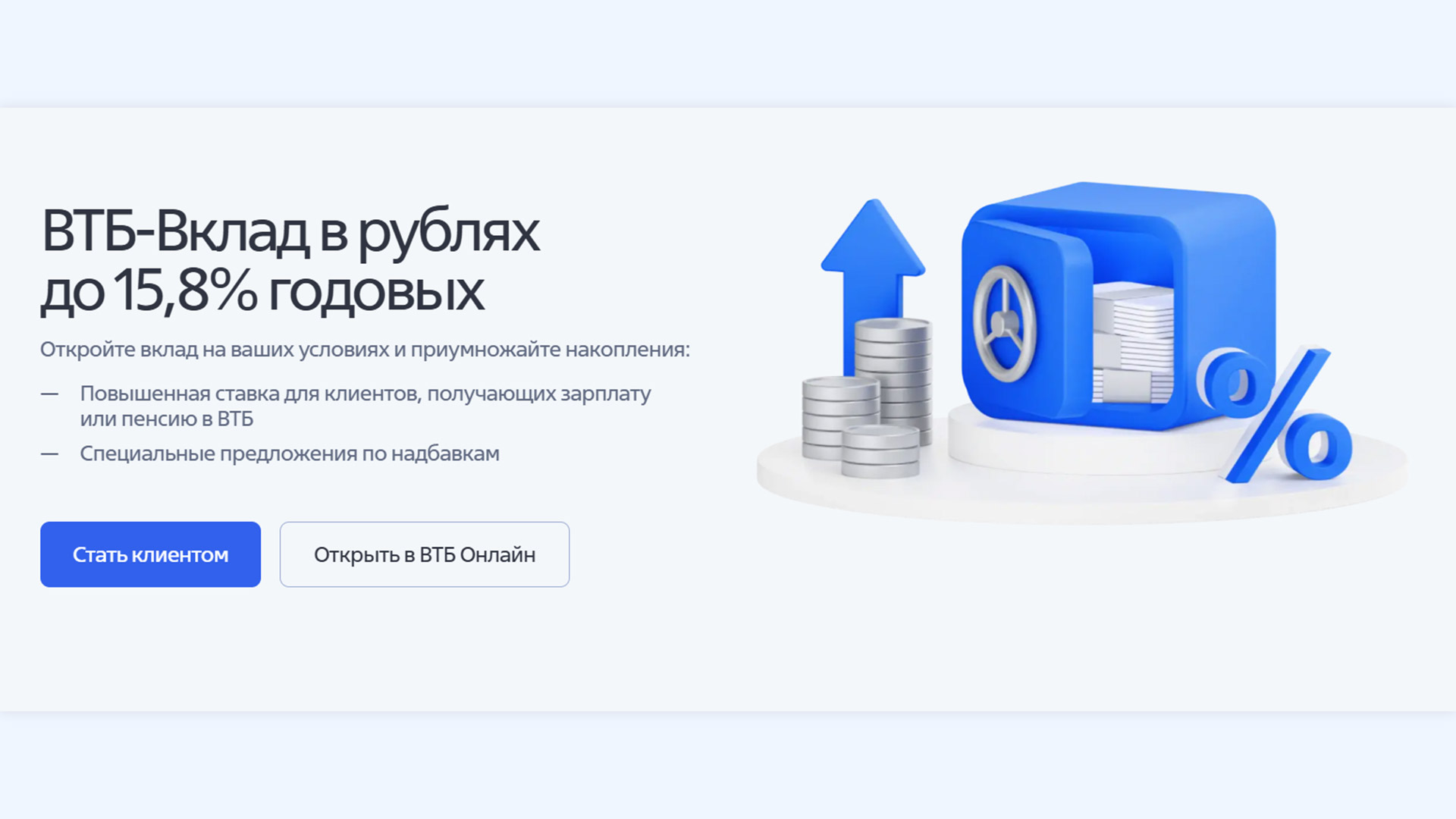 При открытии на сумму от 1 миллиона рублей ставки могут отличаться.
